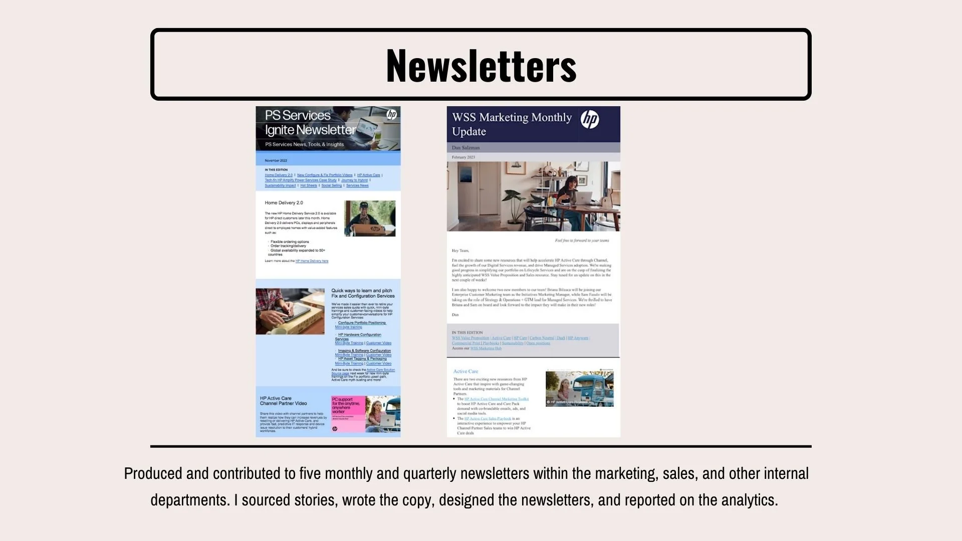 Executive thought leadership, internal newsletters, B2B tech social selling for LinkedIn and Twitter, training development.